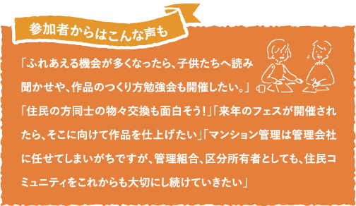 マンション管理は管理会社に任せてしまいがちですが、高齢者も多くなってきた中で、住民交流があることにより、安心感や防犯、マンション内の自治機能強化にも繋がります。こういったイベントをきっかけにマンション内の絆を深める機会として企画してみてはいかがでしょうか。