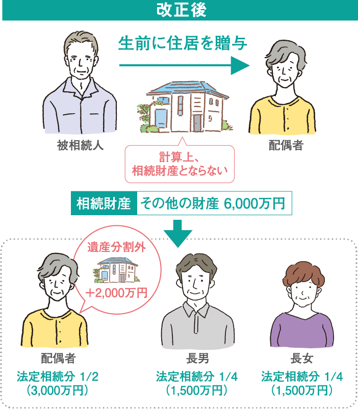長年連れ添った夫婦間の居住用不動産の贈与には、配偶者控除の制度があり、一定の枠内で贈与税が非課税となるため、多くの夫婦がこの制度を使っています。しかし、相続の局面では、贈与等を受けた配偶者の相続分が減ってしまうことがありました。