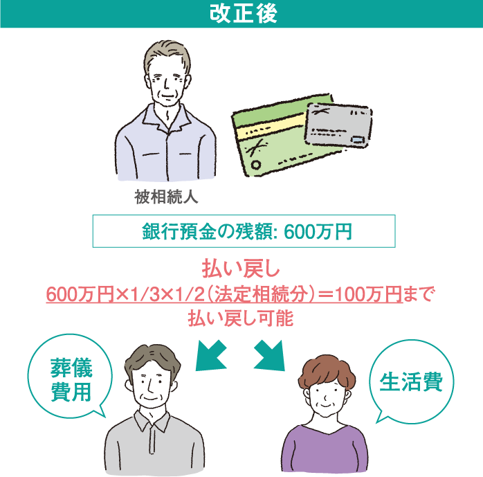 これまでの不都合に対応するため、2通りの預貯金の仮払い制度を設けました。
