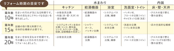 年月が経つと、傷みが出た箇所のメンテナンスや消耗品の交換が必要になってきます。定期的に必要なお手入れを行い、住まいを長持ちさせましょう。
