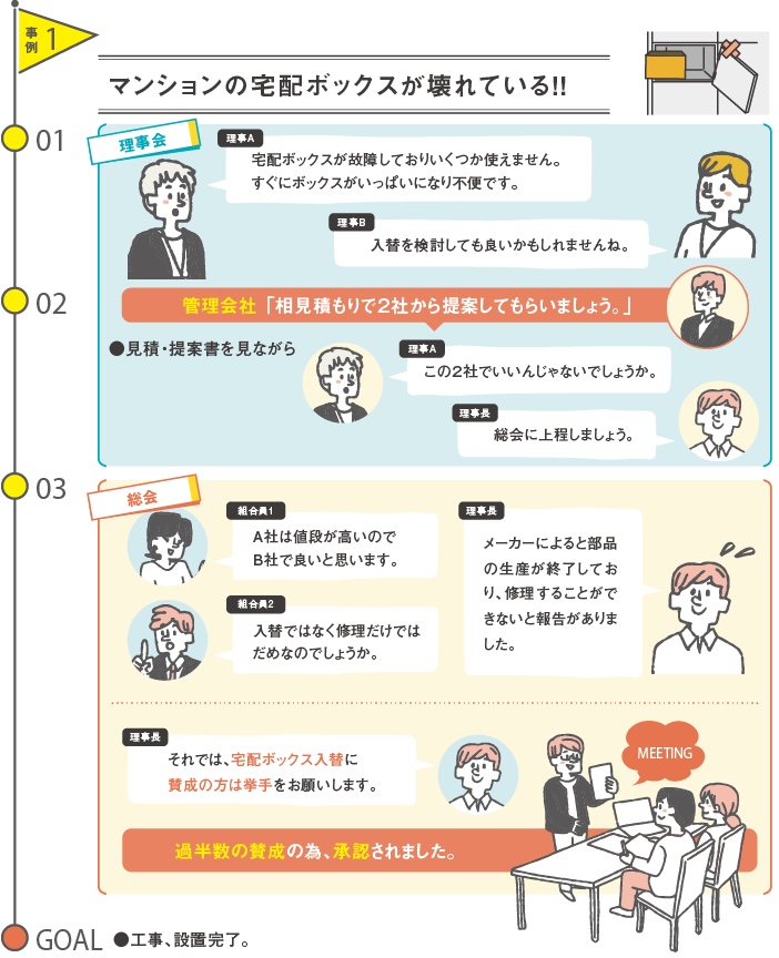 ご紹介した議案内容は数ある議案の中でもほんの一部ですが、どんな内容なのかを少しでもイメージして頂ければ幸いです。また、入居者だけでは解決が難しい内容でも、管理会社がサポートすることで、解決に向け進むということも良くあります。