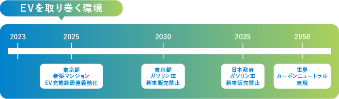 日本政府は、2035年までに乗用車新車販売における電動車の比率を100%とする目標を掲げており、電気自動車購入時の補助金やEV充電器導入時の補助金給付を行っています。