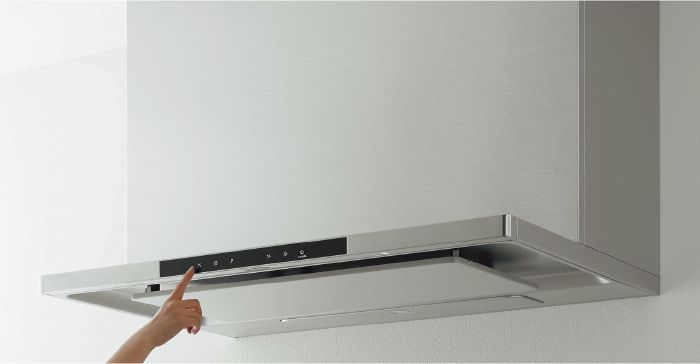 夏場の外出時には室内に熱がこもり、外気より室内のほうが暑くなることがあります。お出かけ時に自動排熱運転をオンにすると設定温度でレンジフードが自動で熱を排出し、帰宅時の熱こもりによる不快感とエアコン急速冷房の消費電力の低減をはかれます。