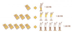 議決権は1戸に対して1議決権の付与が一般的です。そのためマンション内で3戸の部屋を所有していれば、議決権は3となります。