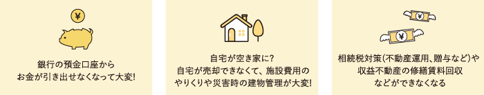 認知症になっても、マンション等の修繕や賃料回収、その他資産運用を家族に任せることができる
