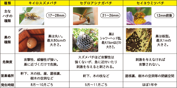 主な蜂の種類、生態について